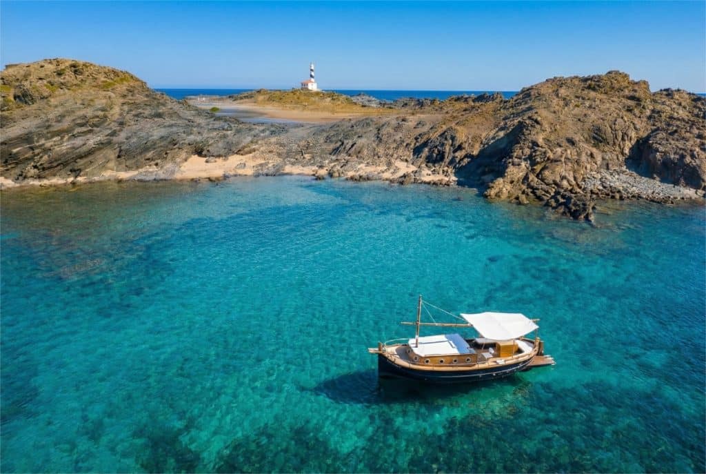 Excursiones privadas en llaut clásico por Menorca, con patrón profesional y todo incluido, para disfrutar la isla con calma. Salidas diarias desde el Puerto de Mahón.